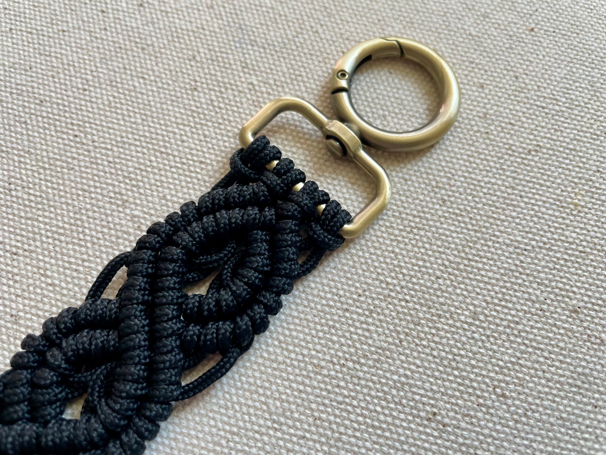 Macramé Paracord Keychain – Black Double Diamond Knot