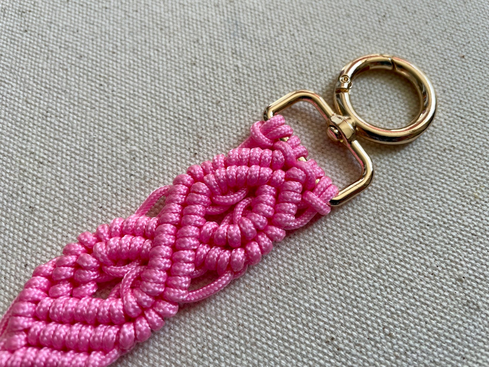 Macramé Paracord Keychain – Pink Double Diamond Knot