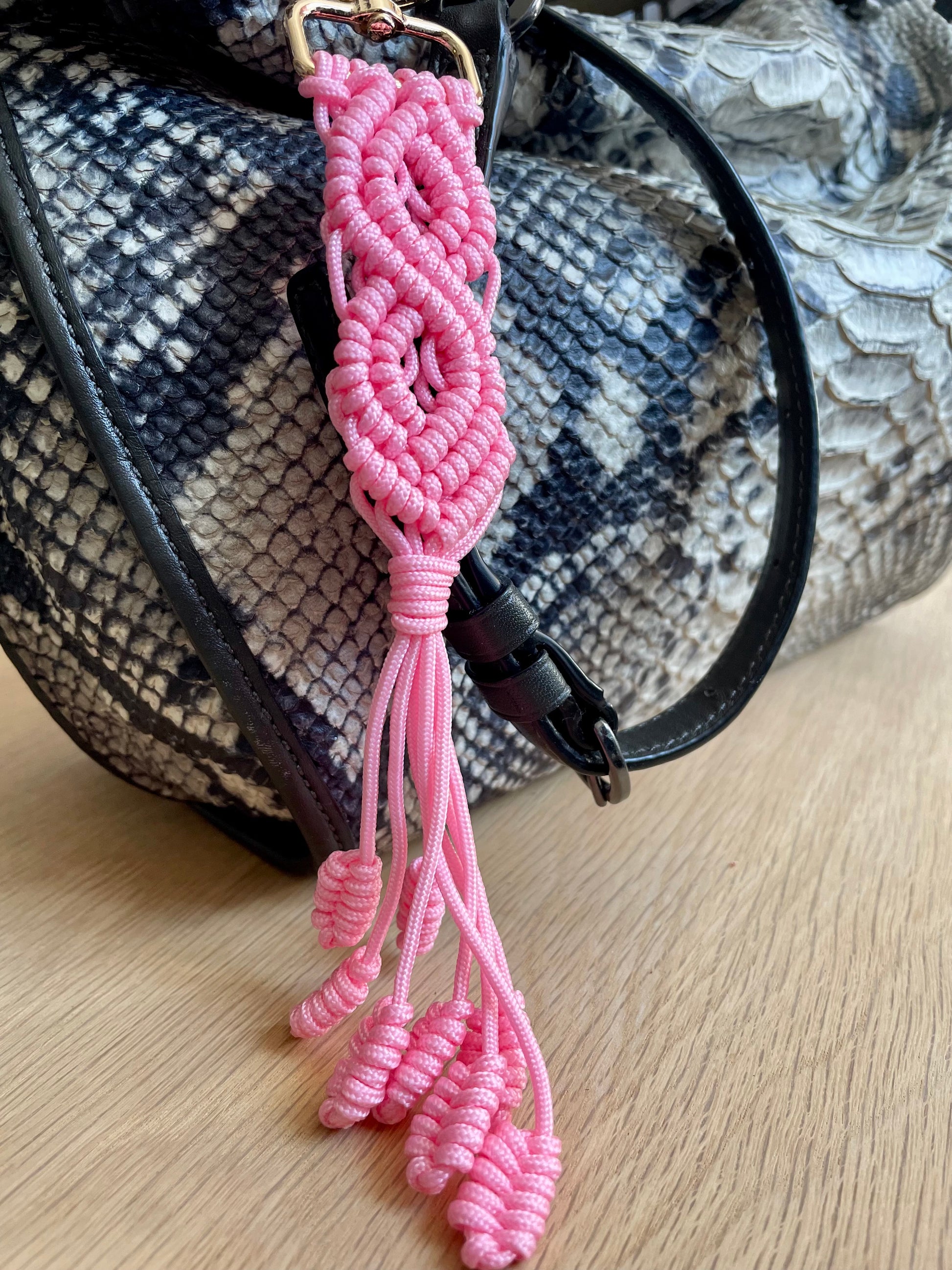 Macramé Paracord Keychain – Baby Pink Double Diamond Knot