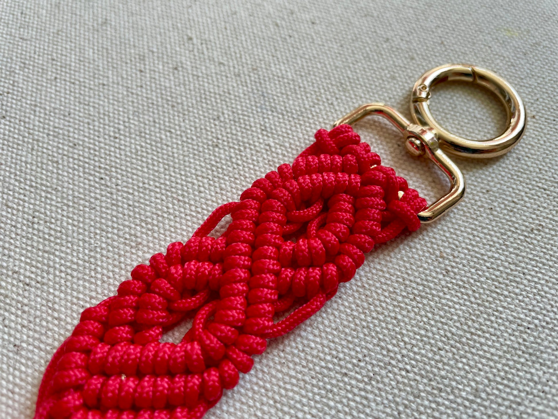 Macramé Paracord Keychain – Red Double Diamond Knot